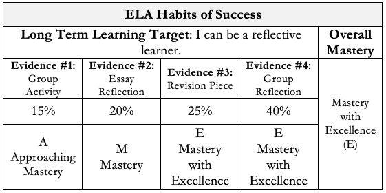 It helps us to recognize and value that past work that students have completed. Since mastery is achieved only when proficiency has been demonstrated over multiple times and in multiple ways, all evidence of mastery is counted towards the students’ final grade. However, evidence of mastery in the earlier stages of learning weighs less than the evidence of mastery in the later stages. This allows us to account for the experience and expertise that our students acquire as the learning process occurs over time.